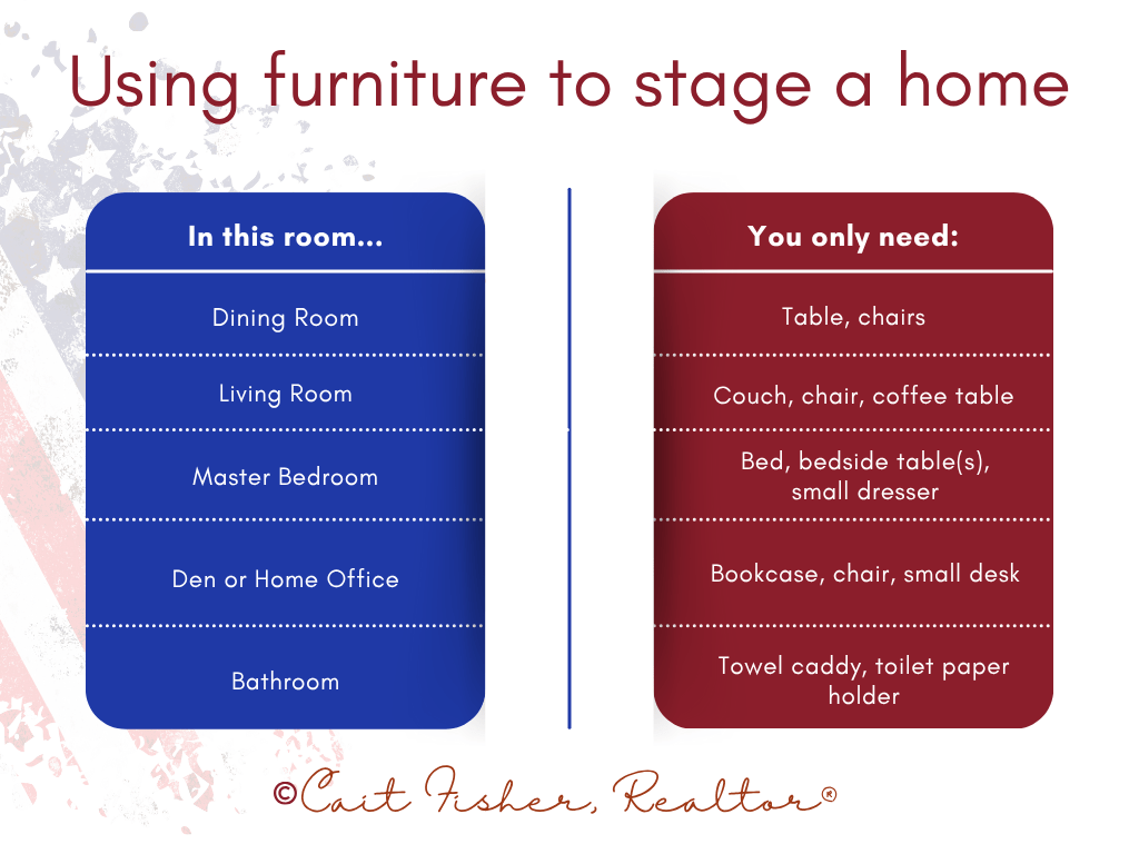 It’s not uncommon for a home to accumulate items over the years. One of the biggest culprits of clutter (even in my home!) is furniture. When you live in a home, you fill it with everything that speaks to your tastes. When you’re selling a home, though, you don’t need compliments — you want offers. Potential buyers want to imagine their own furniture in the space, or consider new pieces to buy for a certain room. So, while it’s essential to stage a home for sale, home staging should be thoughtful and consider potential buyers’ visions.